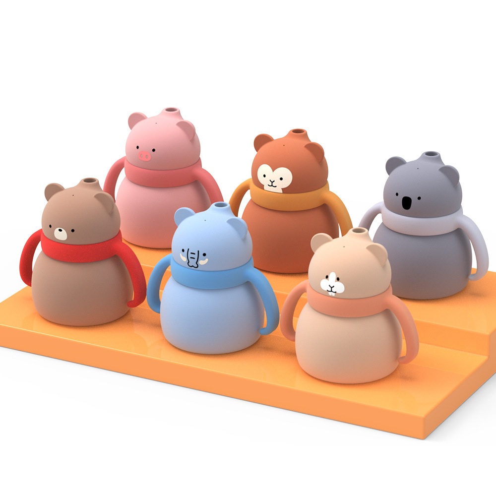 子供ストローカップシリコン漫画カップ転倒防止赤ちゃん学饮保温カップ食器セットダブルハンドルカップ