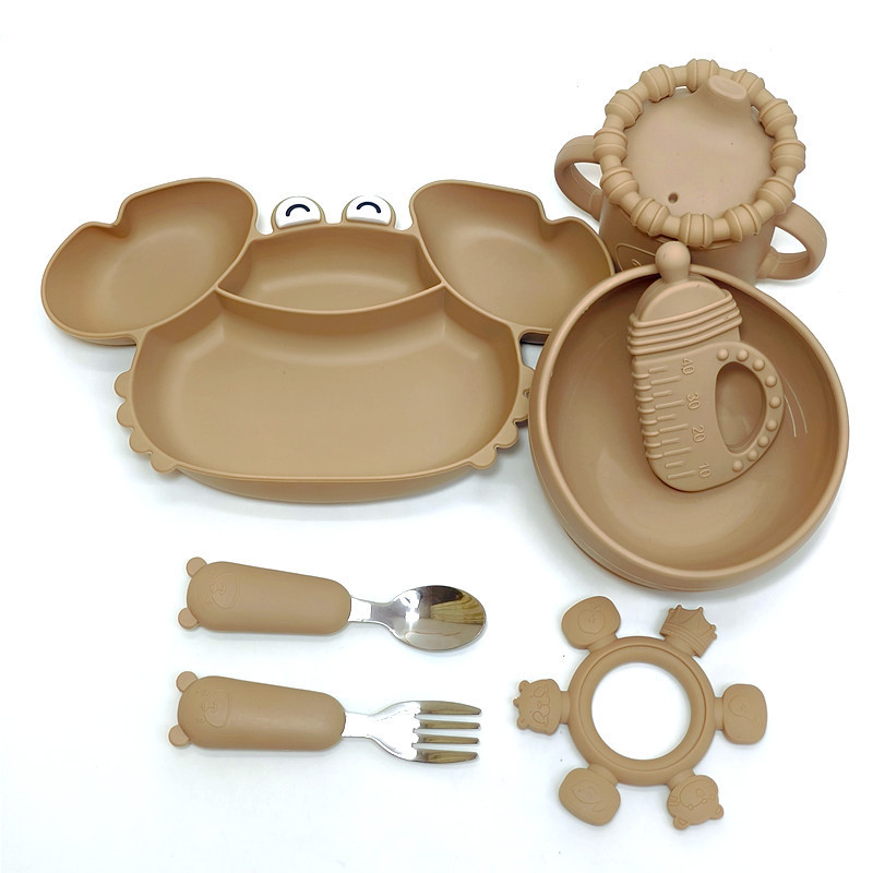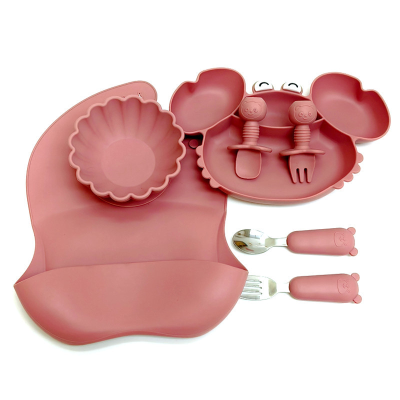 シリコン赤ちゃんカニ分格食事皿赤ちゃん吸盤式転倒防止補助ボウルスプーン歯ゴム子供食器セット