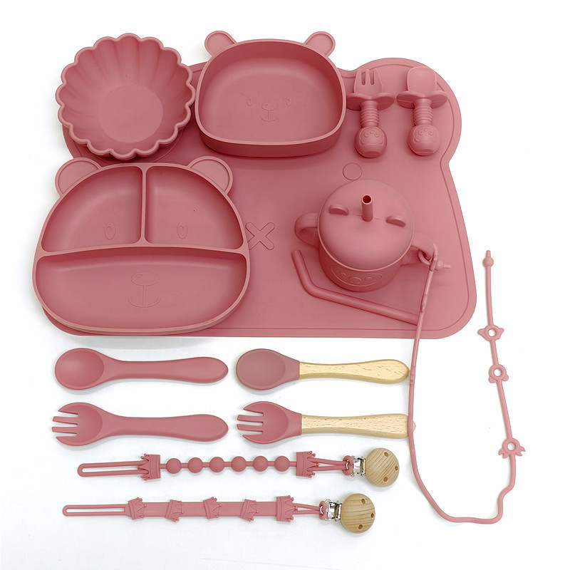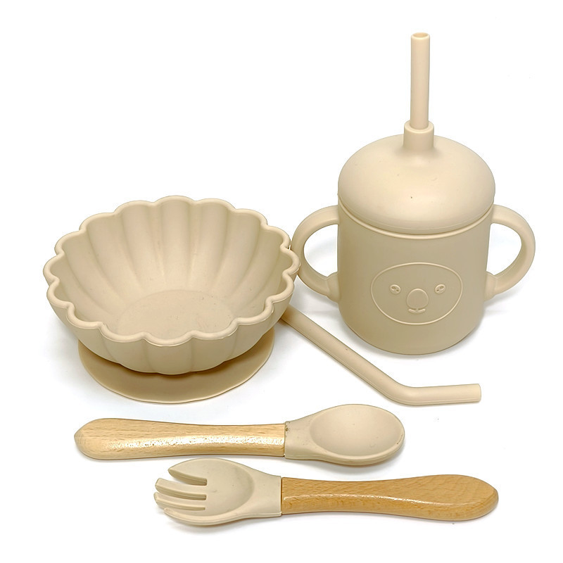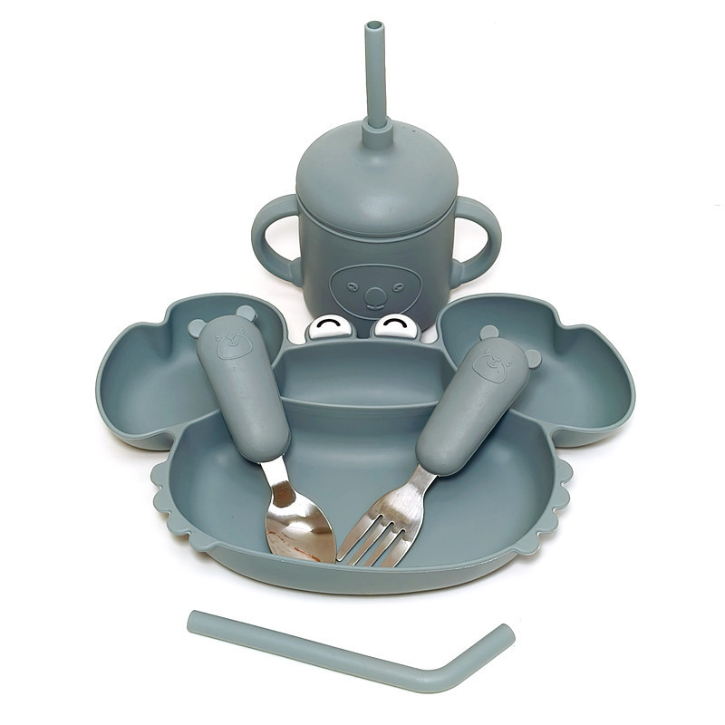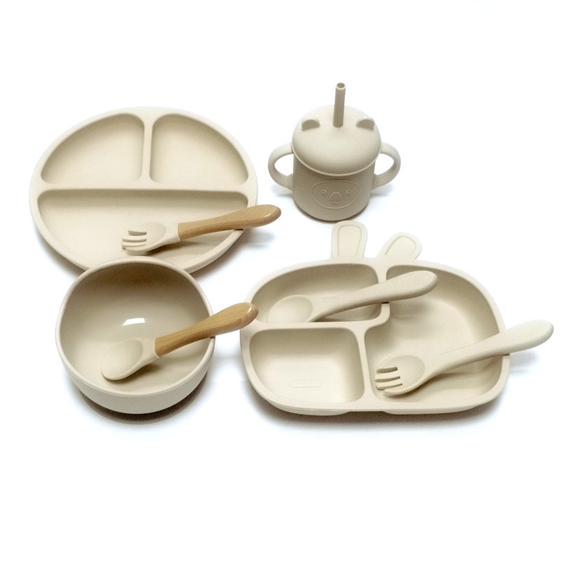 乳幼児用補食シリカゲル食器分格食皿吸盤赤ちゃんの米粉補助食器ストローコップスプーンが落ちないようにする