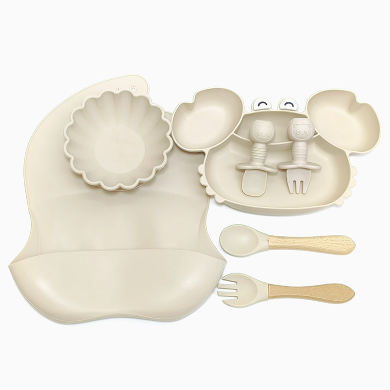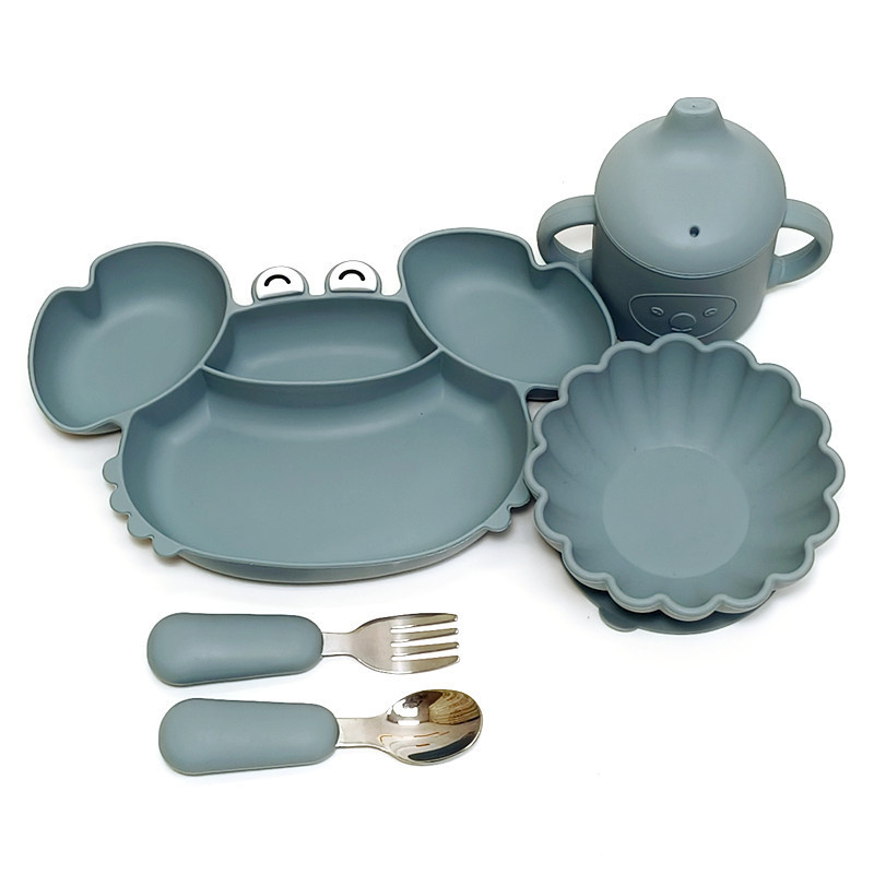 分格カニ食事皿ベビー吸盤式子供食器食事専用碗フルセットフォークスプーンシリカゲル補助碗スプーン