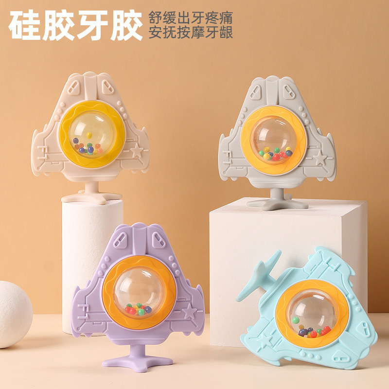 赤ちゃんの飛行機の手の鈴の食品級の歯のゴムの赤ちゃんの歯を磨く棒は歯の口を煮て歯を生みたいです。