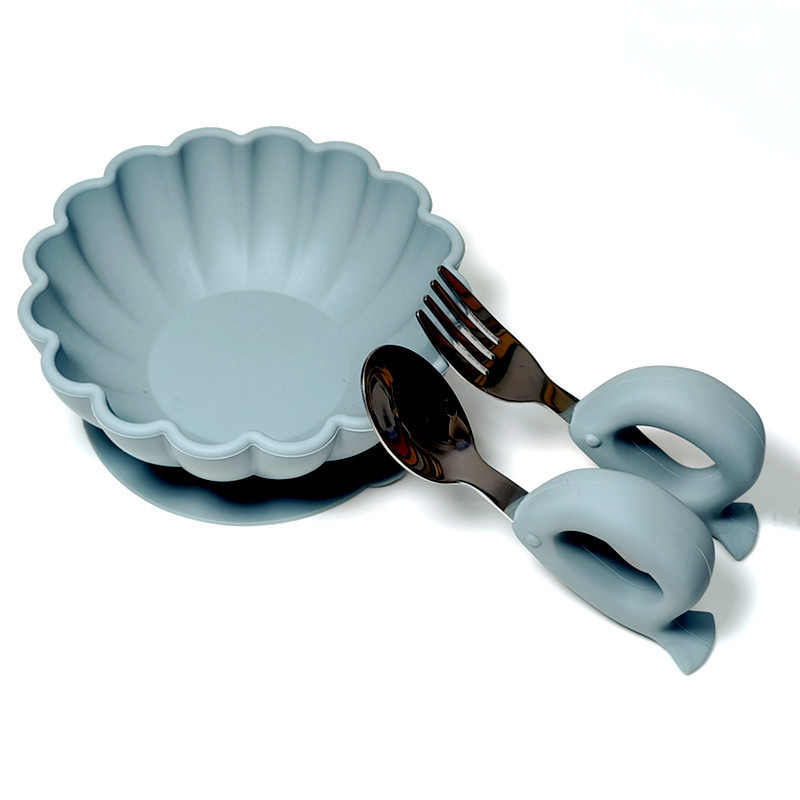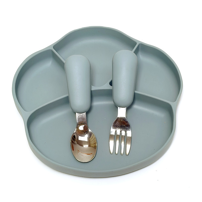 乳児吸盤補助食器飼育分格皿短柄フォークスプーン食品級シリカゲル一体式高温消毒可能