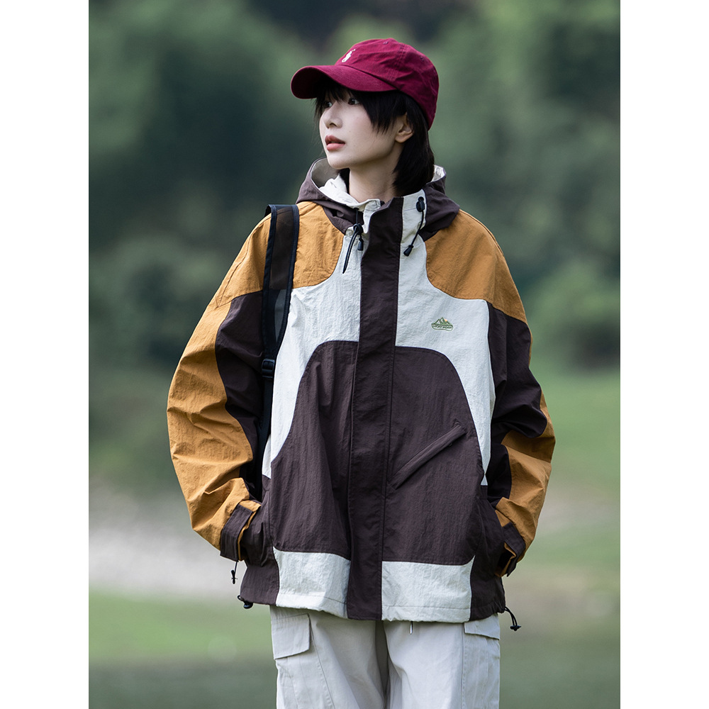 アウトドアジャケットカップル男性と女性のステッチコントラストカラーハイキングジャケットカジュアルジャケット 2025 春と秋の新スタイル