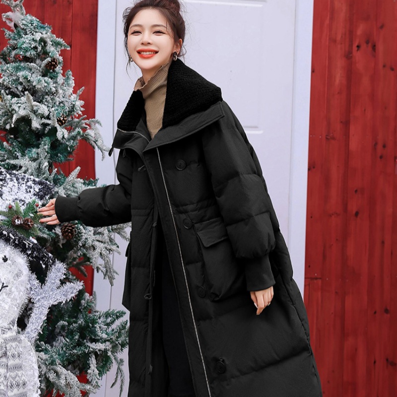 2025年新作カップル向けダウンジャケット、韓国風ゆったりロング冬用厚手コート、厚手パフジャケット