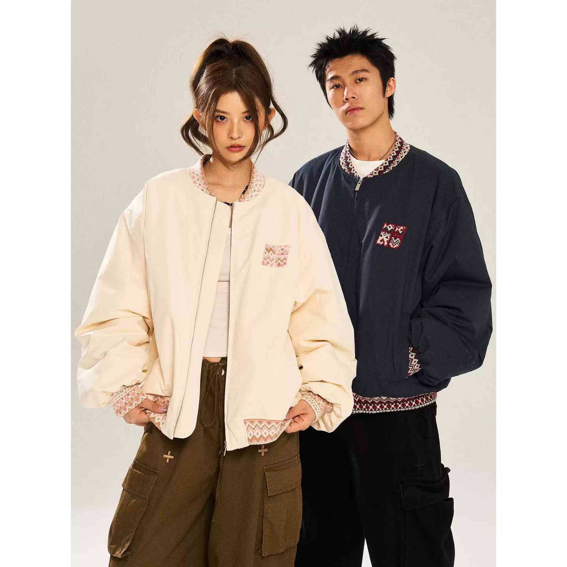 2025 ジャカードジャケット男性と女性のアメリカン冬レトロ新デザイン野球ステッチルーズカップル綿服