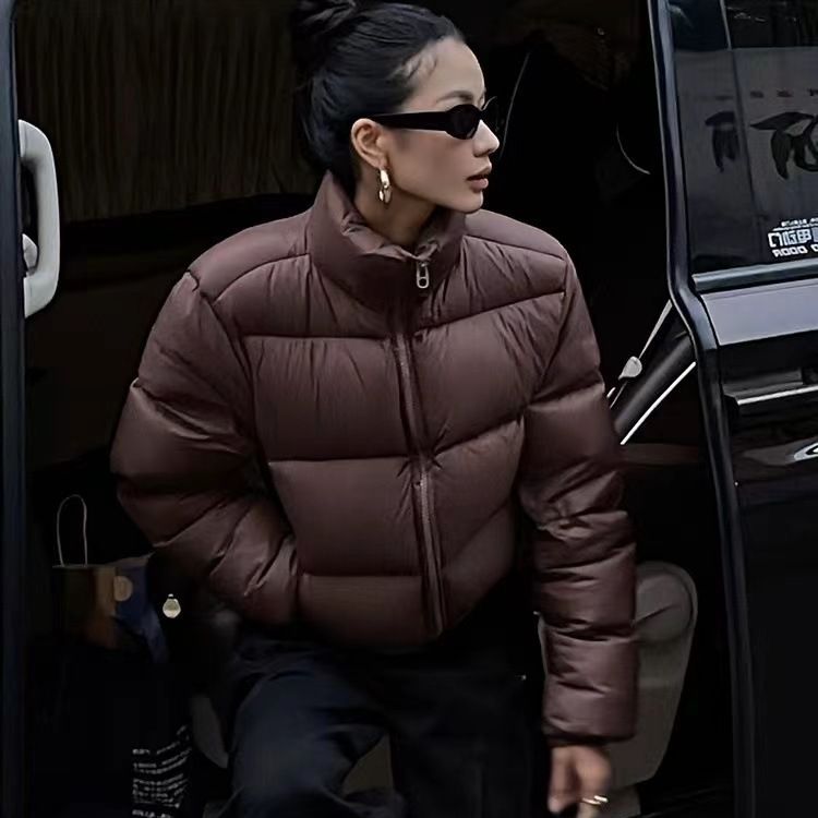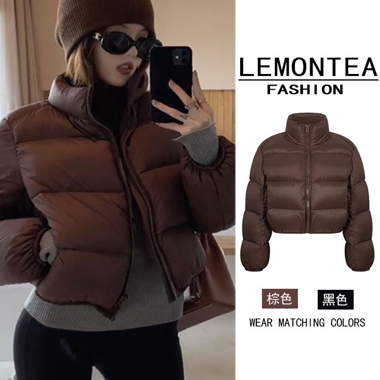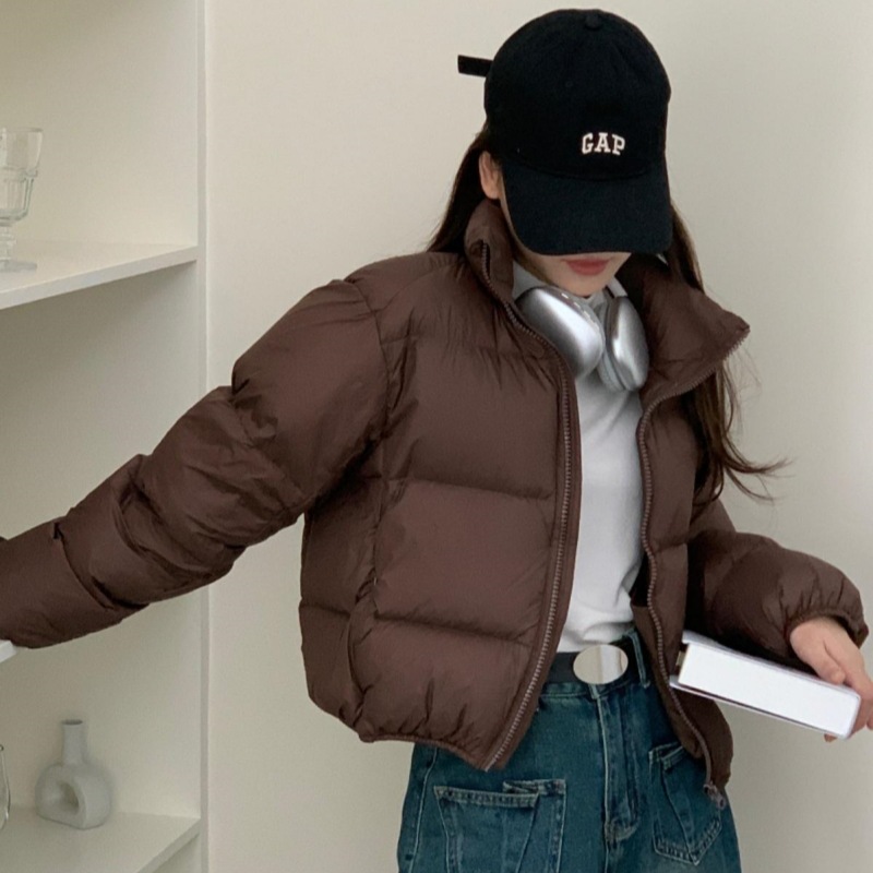 2025年新作 コーヒー色の綿入れジャケット レディース 冬用 ショート丈 韓国風 ゆったり 小柄さん向け 高級感あるパンコート