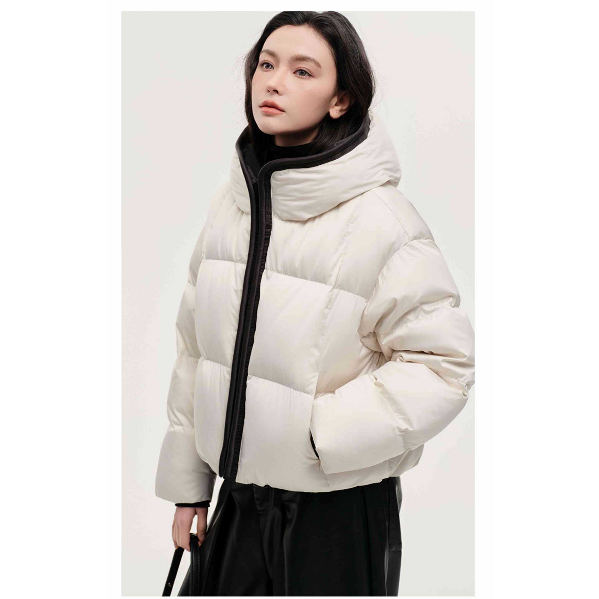 2025年冬新作 ダウンコットンジャケット ショート丈 おしゃれ 韓国風 厚手 個性的 配色 フード付きコート 中綿ジャケット トレンド