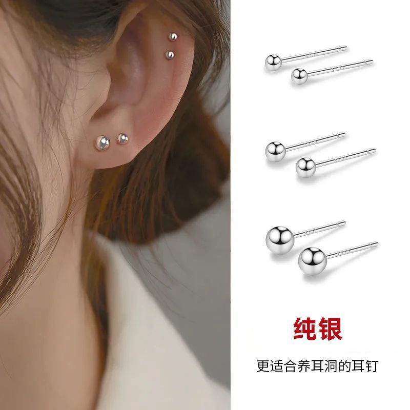 ピアス銀ピアス女性はアレルギー耳棒足銀耳針が炎症を起こした棒で耳穴を飼っている学生は巧みに独立して立っている