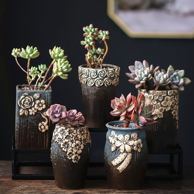 陶缶多肉植木鉢陶磁器卸売り古い杭室内個性創意肉植木鉢メーカー代理メーカー直販