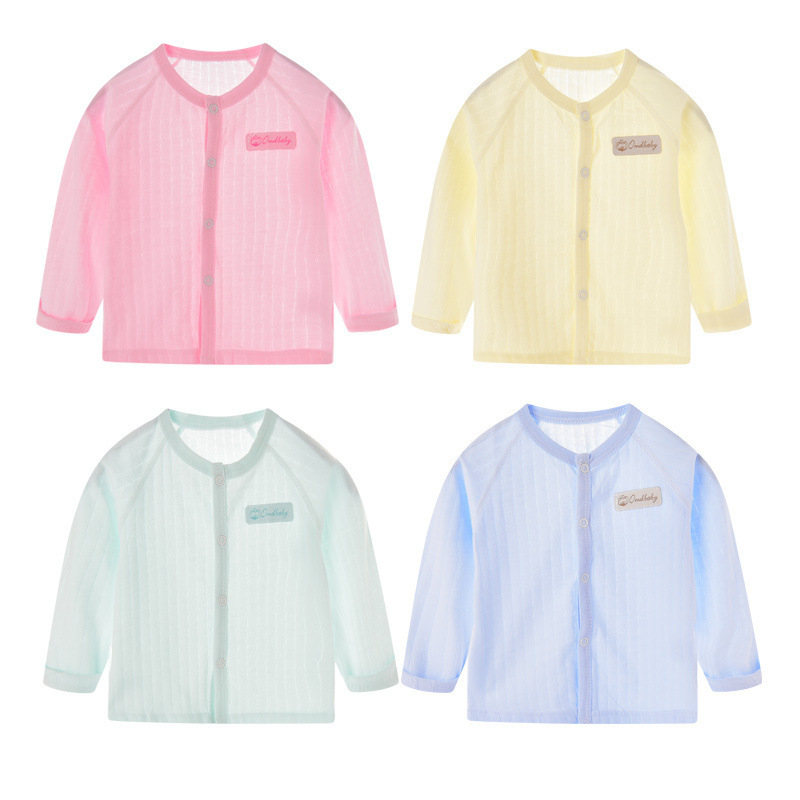 赤ちゃんの夏の通気性の服の上着春秋夏の男女の赤ちゃんの単品のTの薄いタイプの子供はパジャマの0-1-3を開きます。