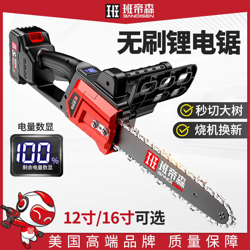 班帝森チェーンソー充電式ハイパワーリチウムチェーンソー小型多機能家庭用屋外木切り木切り鋸柴