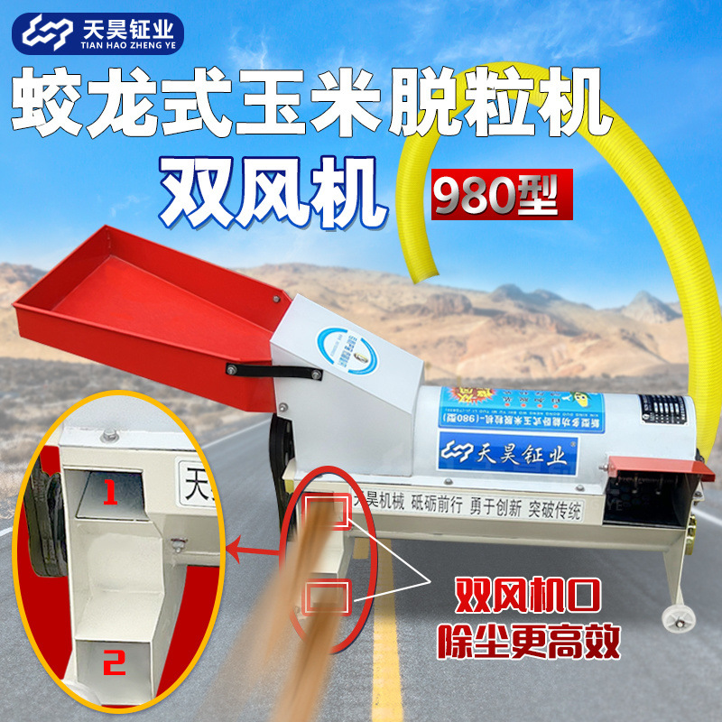 双風機のトウモロコシの脱穀機のトウモロコシの機械のトウモロコシの小型家庭用の電動は袋を詰めて車のトウモロコシの脱穀機の蛟竜を詰めます。