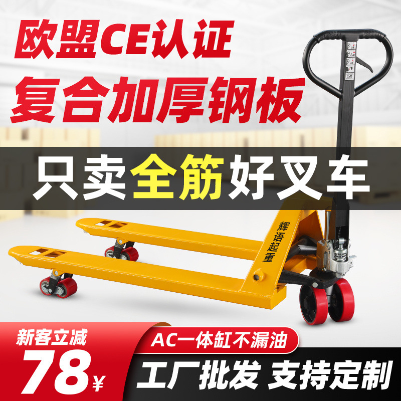 地牛フォークリフト手動油圧車搬送車2トン3トン積載車昇降小型手動フォークリフト手動トレーラー