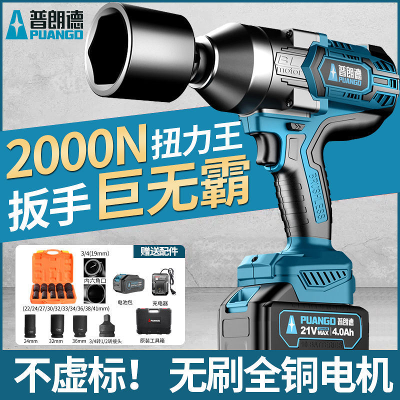 3/4リチウム電池ブラシレス電動レンチ大トルク自動車修理タイヤ分解リチウム電気風砲架子工充電式