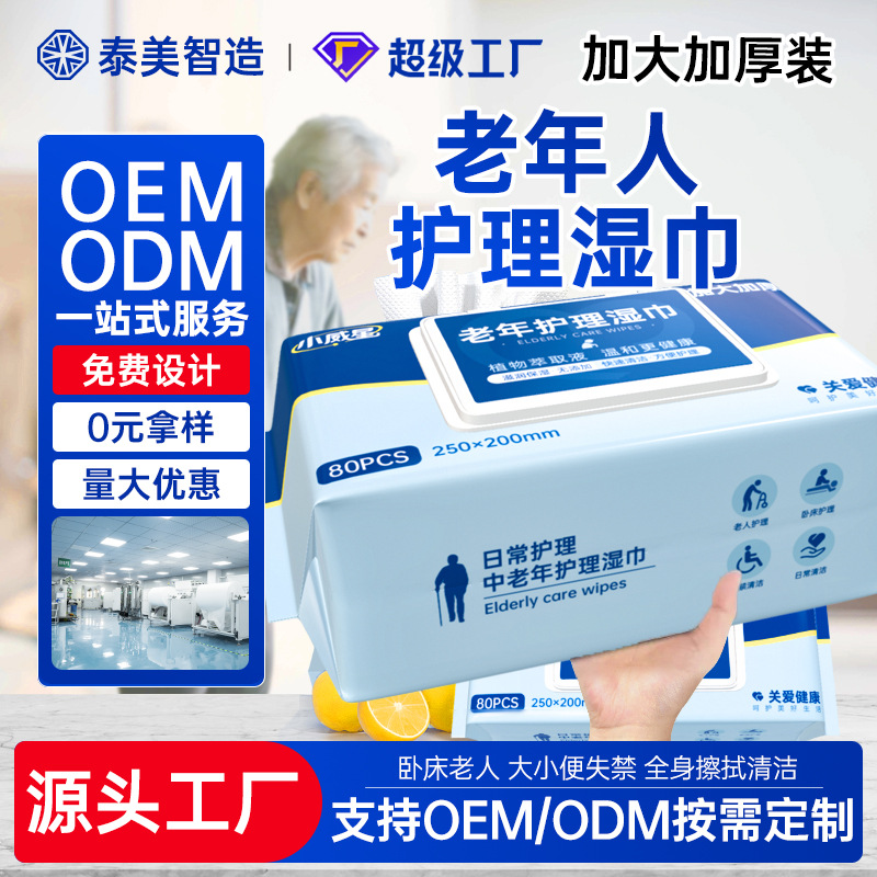 高齢者介護用のカスタマイズされたウェットワイプ、厚みのある寝たきりの大人のお尻を拭くボディケア衛生クリーニングウェットワイプ