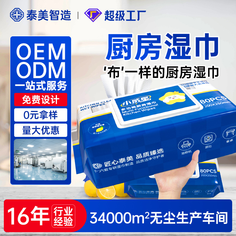 油分を除去するように増粘したカスタマイズされたキッチンワイプ、家庭用レンジフードの掃除と重油汚れの除去、OEMカスタマイズされたウェットワイプ