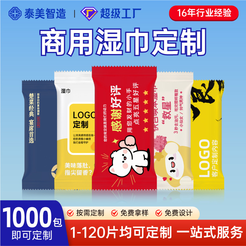 広告ウェットワイプ商業テイクアウトケータリングウェットワイプシングルピース個別包装ウェットワイプ使い捨てウェットワイプ工場卸売