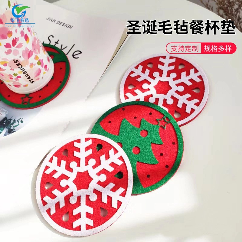 クロスボーダー供給洋食マット滑り止めパーマ防止アイデア透かし彫り雪花型コースタークリスマス装飾フェルト食事コースター