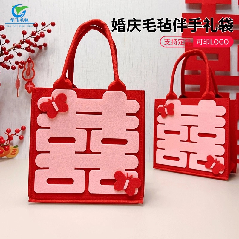 創意双喜の字のフェルトは新しい中国式の結婚のお土産を包みます。