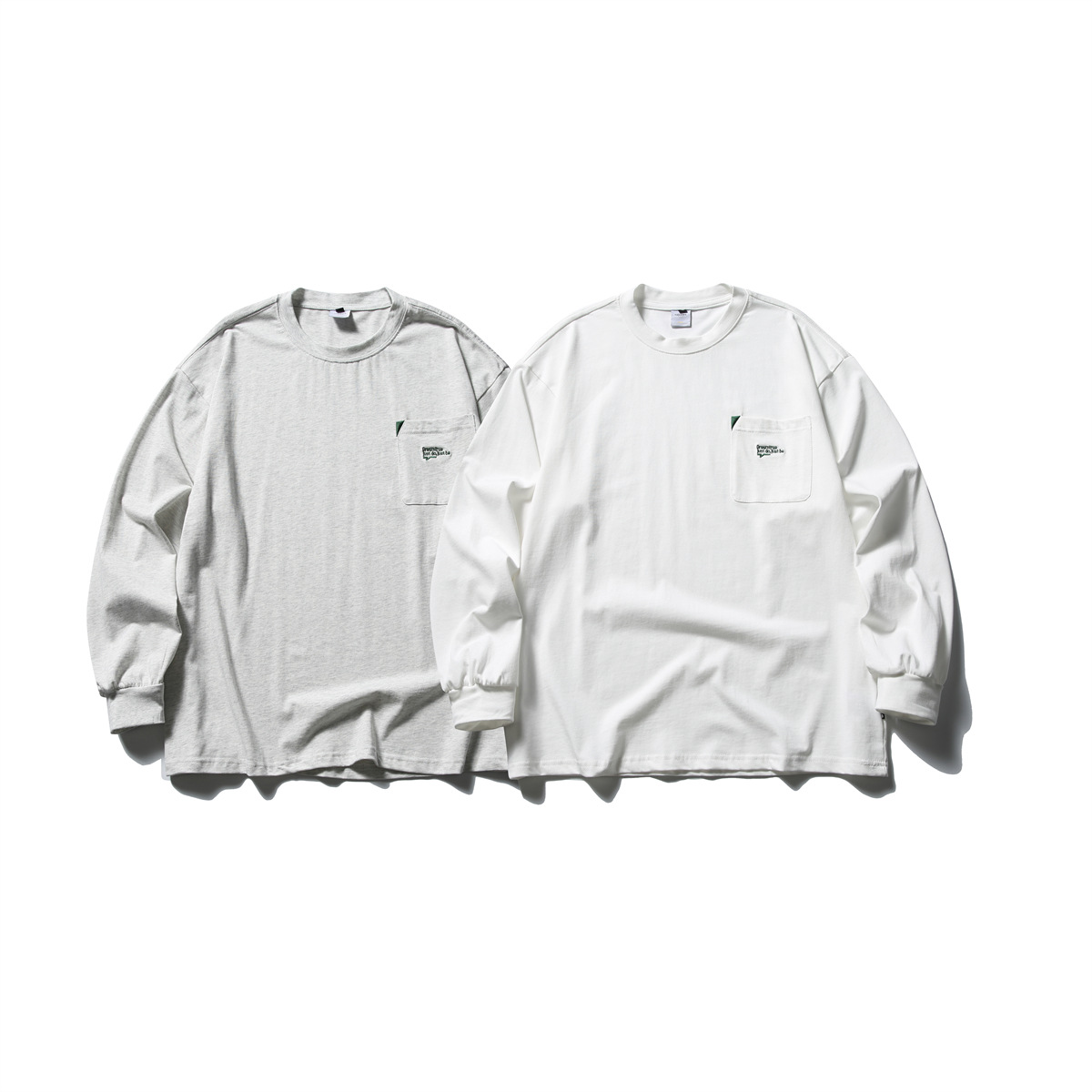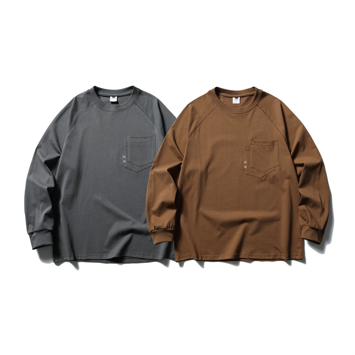北界の紳士服のアメリカのファッションブランドの2024秋の新型のポケットは長袖のtシャツの男性の丸首のカジュアルな底のシャツを刺繍します。