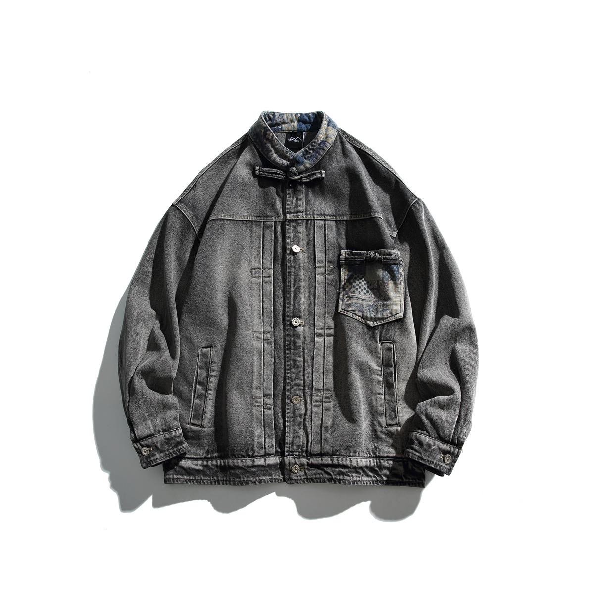 北界の紳士服のアメリカのファッションブランドの2024秋の新型の復古的なつなぎ合わせのデニムのコートの男性の新しい中国式のジャケット