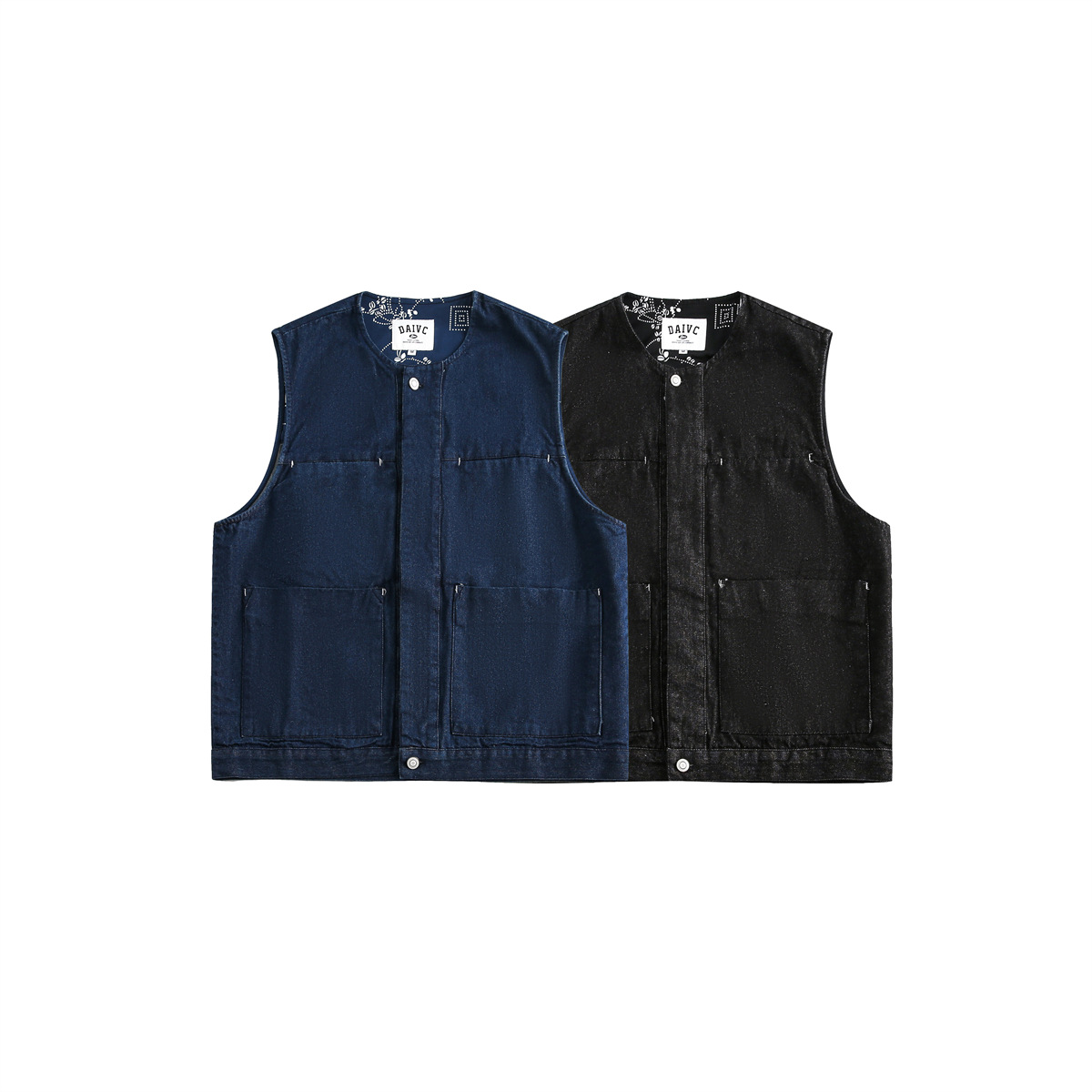 北界の紳士服のアメリカのファッションブランドの2024秋の新型の多ポケットのデニムの馬甲の男性の工装の袖なしのコート