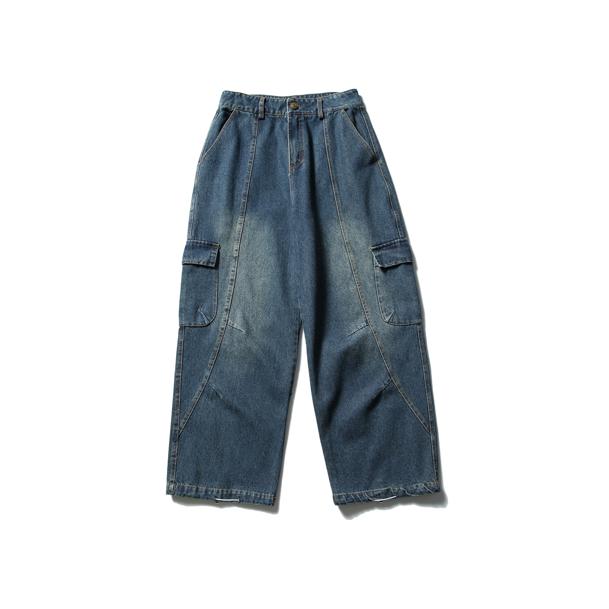 北界の紳士服のアメリカのファッションブランドの2024秋の新型の重い水洗いのジーパンの男性は古い郭の形のレジャーのズボンをします。