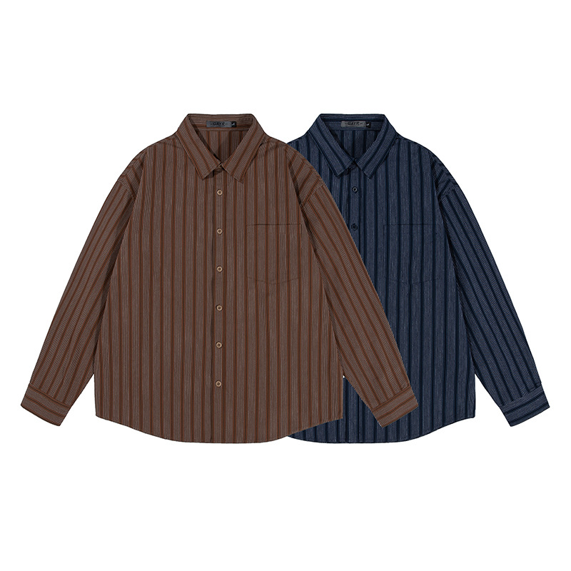 北界の紳士服のアメリカのファッションブランドの2024秋の新型の細いストライプのシャツの男性の復古のつなぎ合わせのパッチのシャツ