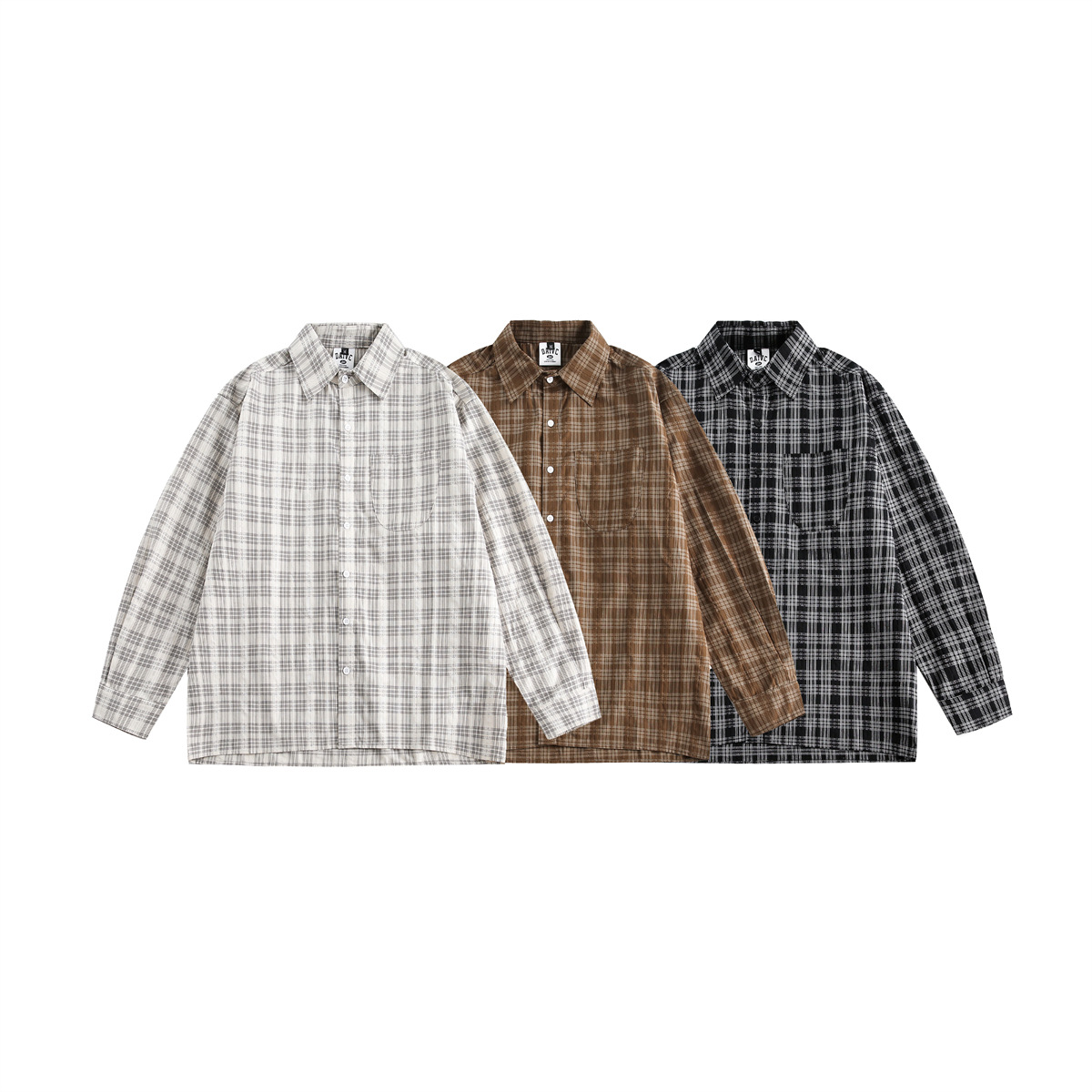 北界の紳士服のアメリカのファッションブランドの2024秋の新型の復古の格子のシャツの男性の長袖のシャツのカップルの上着
