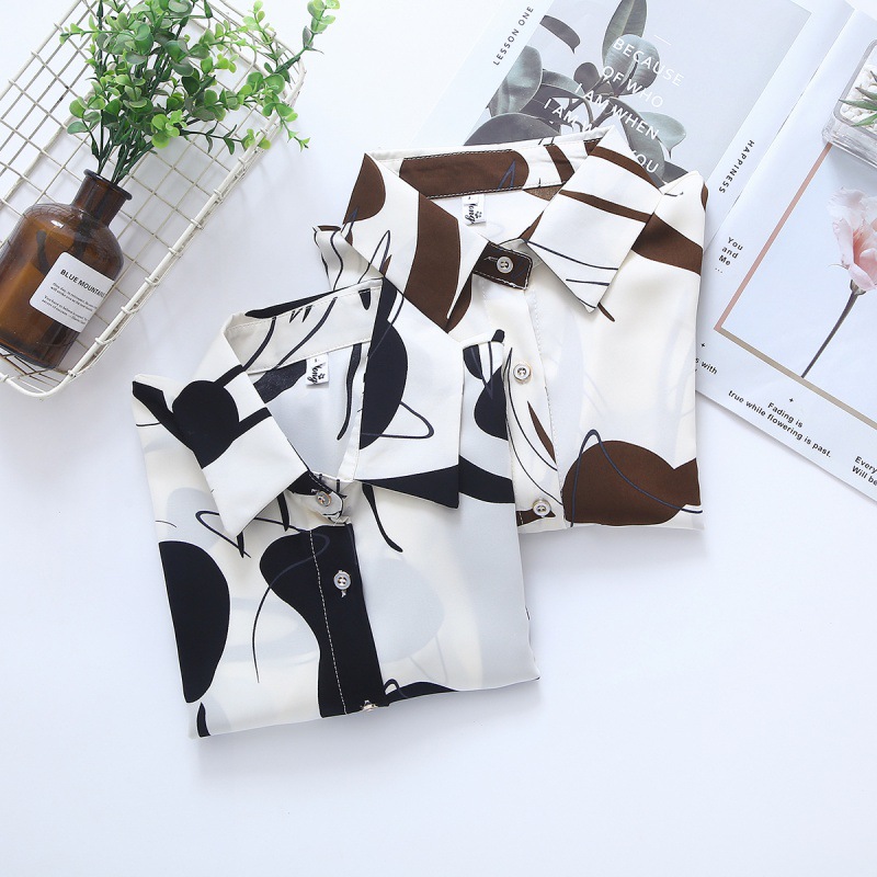 2022早秋の新型スターと同じ抽象的なレトロなプリントシャツの女性長袖シフォンシャツ