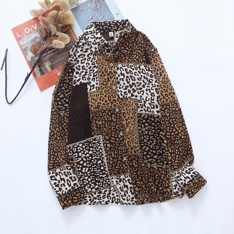 ヒョウ柄のシャツの女性はゆったりしています。2022春夏の新型長袖のシャツのファッションはやせています。
