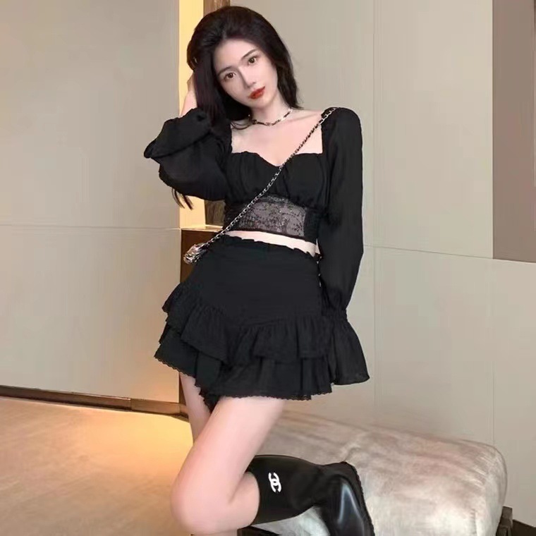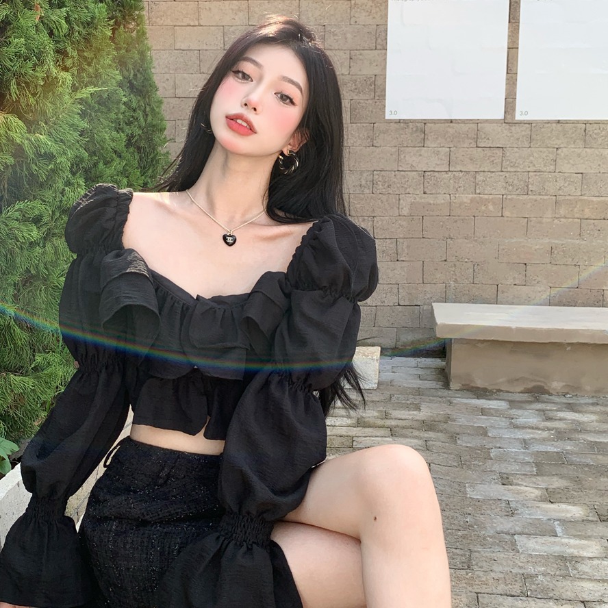 Shopee商品の泡袖の四角い襟の長袖の上着