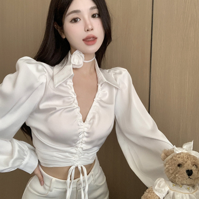 東南アジアクロスボーダーのデザイン感polo襟長袖シャツ泡袖引き襟シャツの上着の女性