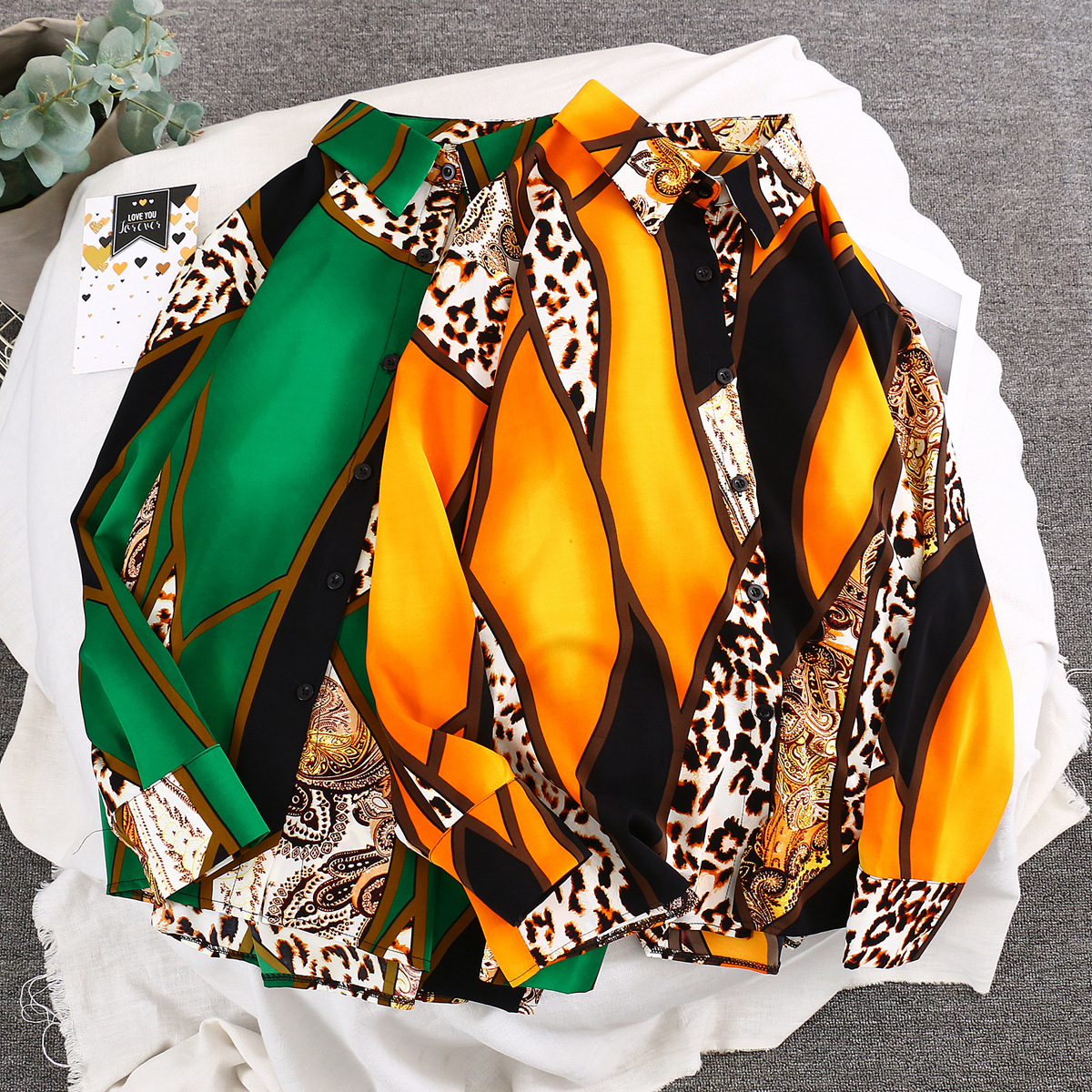 外国貿易の婦人服2020秋の新型欧米の速いファッションのヒョウの動物の図案のプリントの長袖のシャツの上着の女性