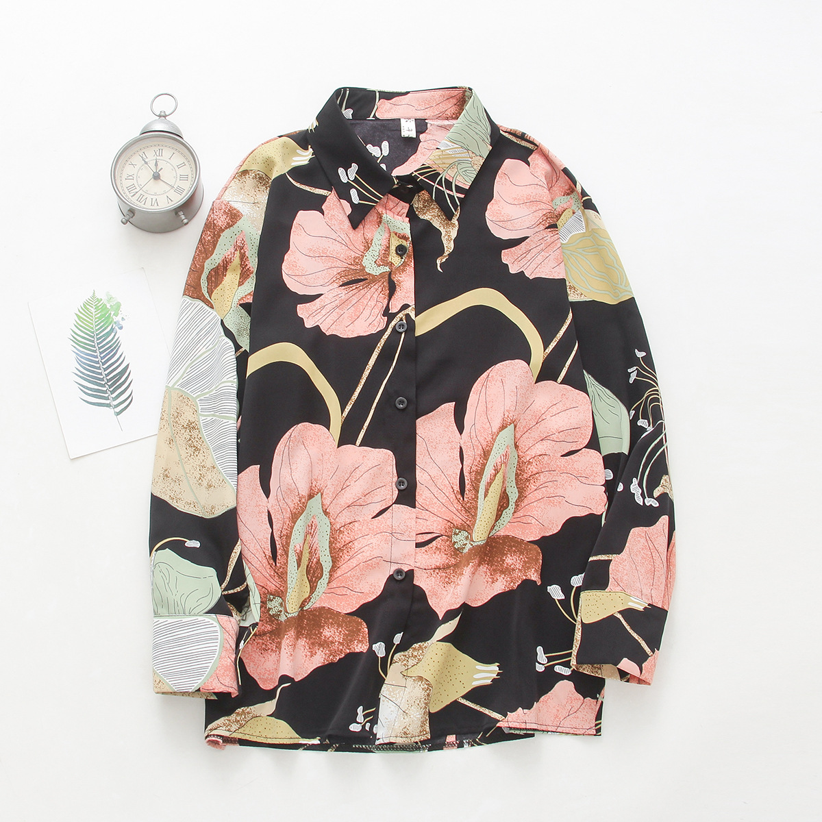 外国貿易欧米風ゆるいファッション個性プリント上着polo襟カジュアル長袖シャツ女