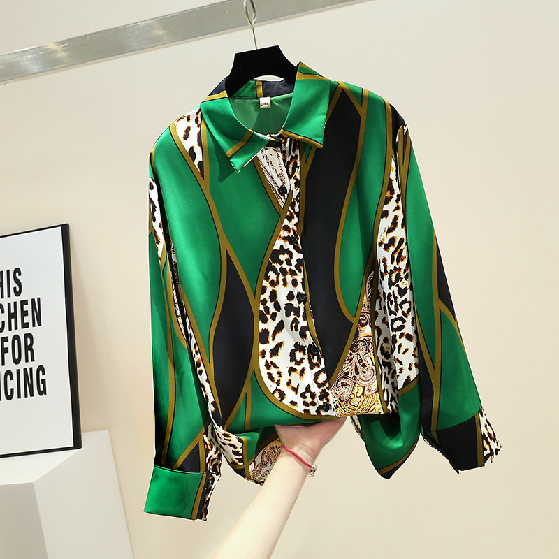 実拍フランスプリント襟シャツ長袖ゆるい绢糸上着気質通勤シャツ女夏新作