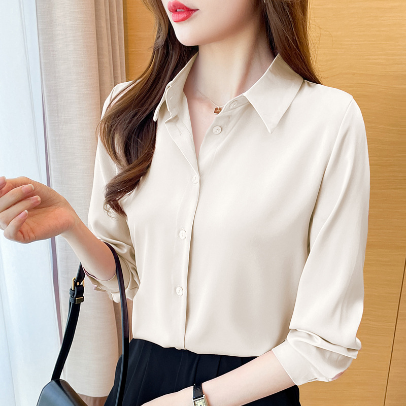 実写中大量スポット春秋フレンチサテンシルク長袖シャツレディース高級感シャツ
