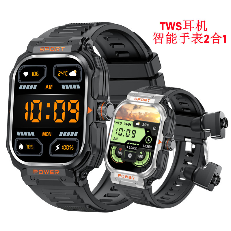 クロスボーダーT97スマート腕時計新型TWSイヤホン運動腕時計二合一心拍血圧健康NFC支払い