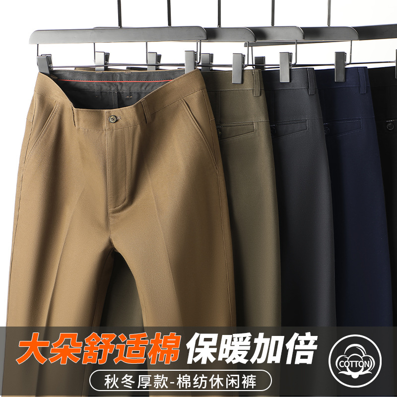 新しい秋と冬の厚いメンズカジュアルパンツ中年ストレートメンズパンツビジネス高弾性ズボンメンズベルベット厚手のパンツ