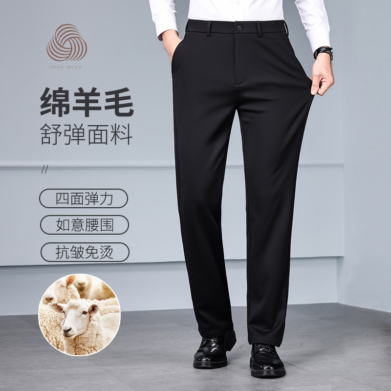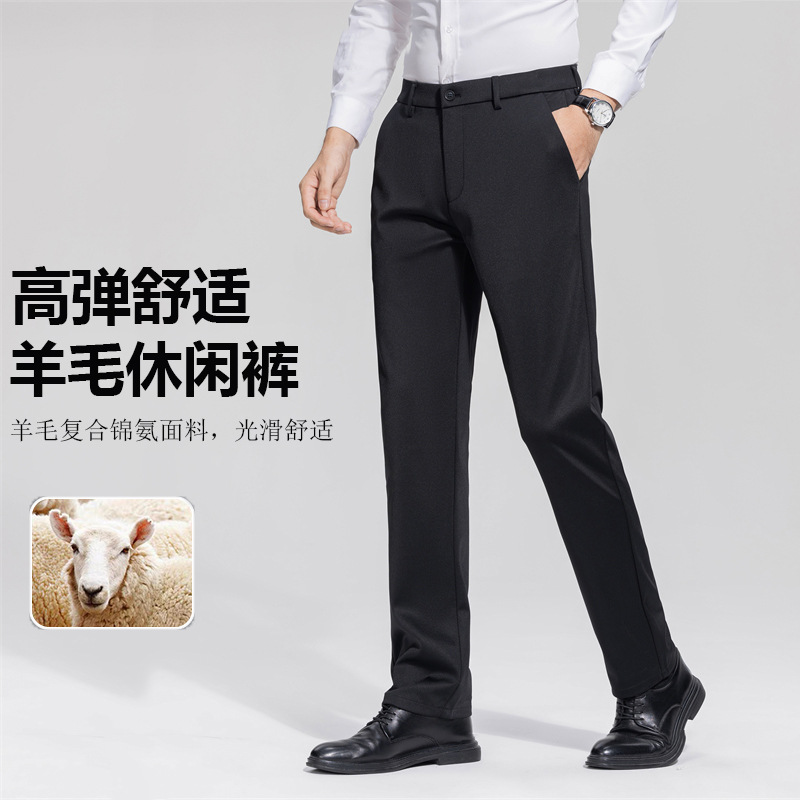 ウール混紡男性カジュアルパンツ秋冬厚モデルゆるいストレート蓄熱保温微弾ビジネス毛