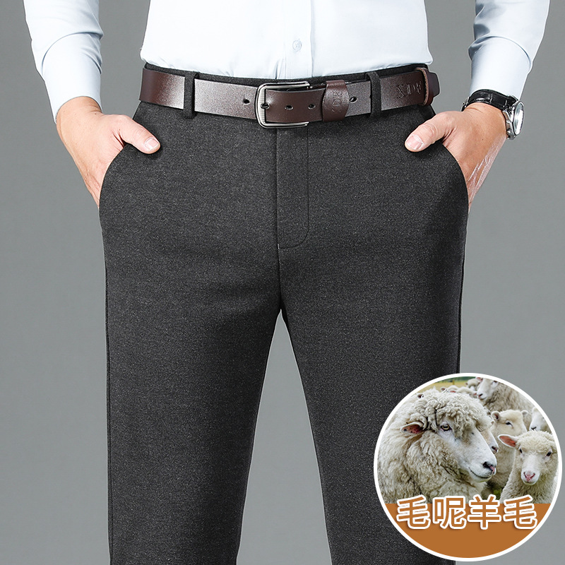 複合ウール混紡男性ズボン秋冬厚タイプカジュアルズボン男性ビジネスズボンストレート弾力ベルベット長ズボン
