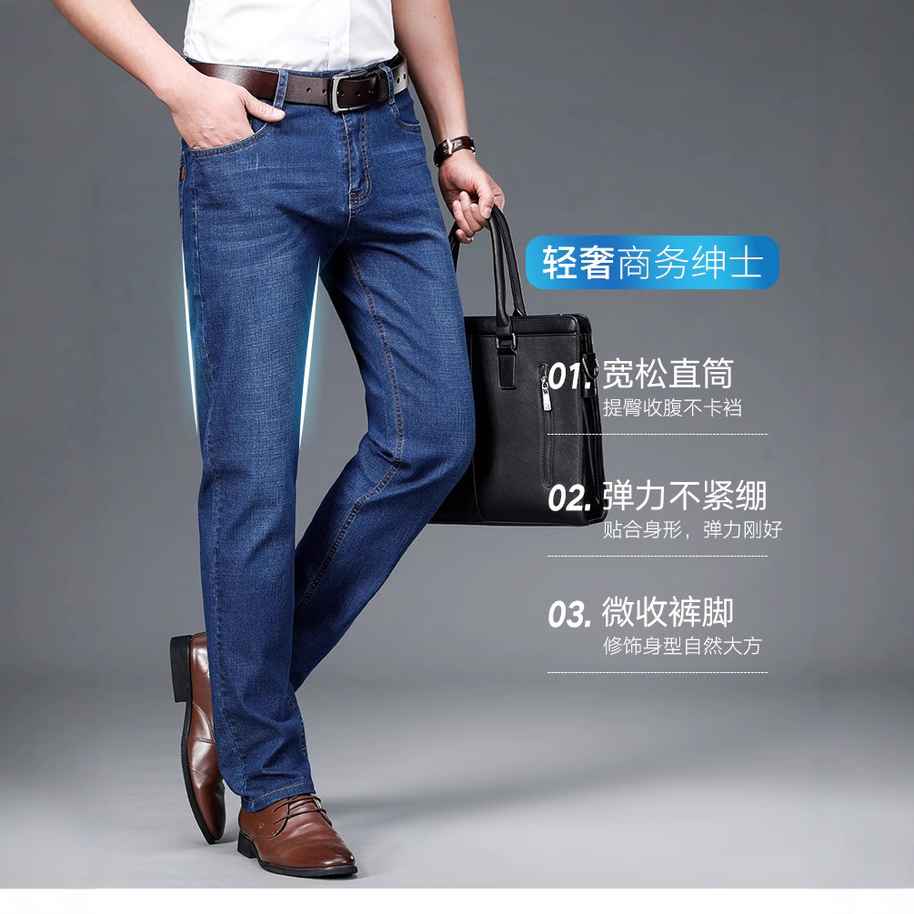 メンズジーンズ ストレート 秋冬 厚手 ゆったり メンズウェア シンプル ビジネス 中年男性用パンツ ノーアイロン 綿素材 カジュアルパンツ