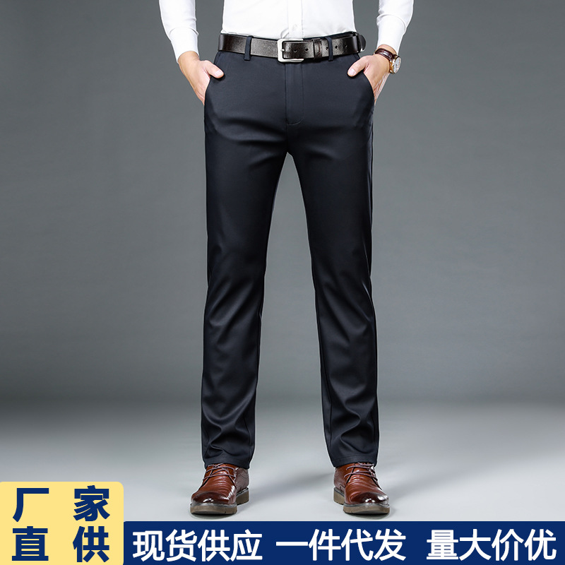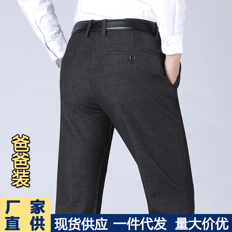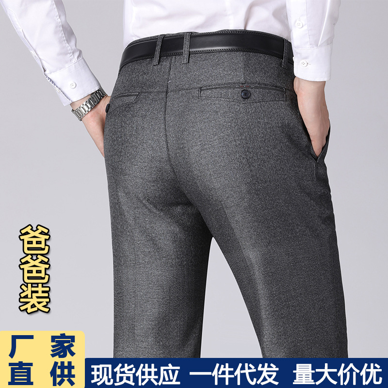 新商品のメンズカジュアルパンツ夏の薄いストレートのゆったりしたビジネス男性のズボンの中年のズボンの弾力の純色のズボンの卸売り
