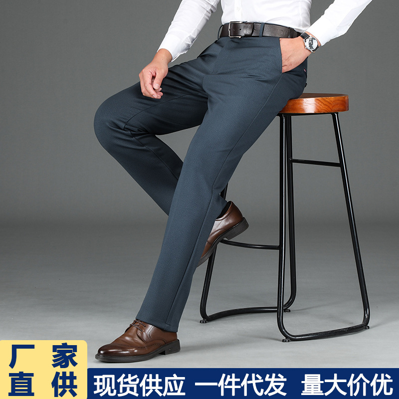 2023夏の新型男性ズボン弾力ストレートビジネスズボン男性式中年ズボン無料薄いカジュアルズボン