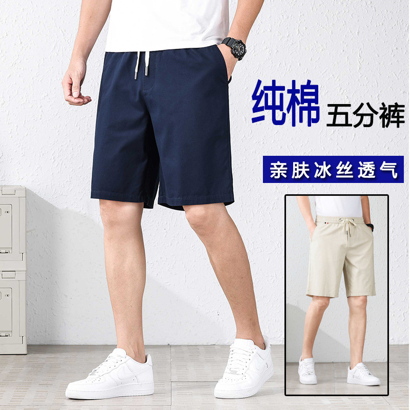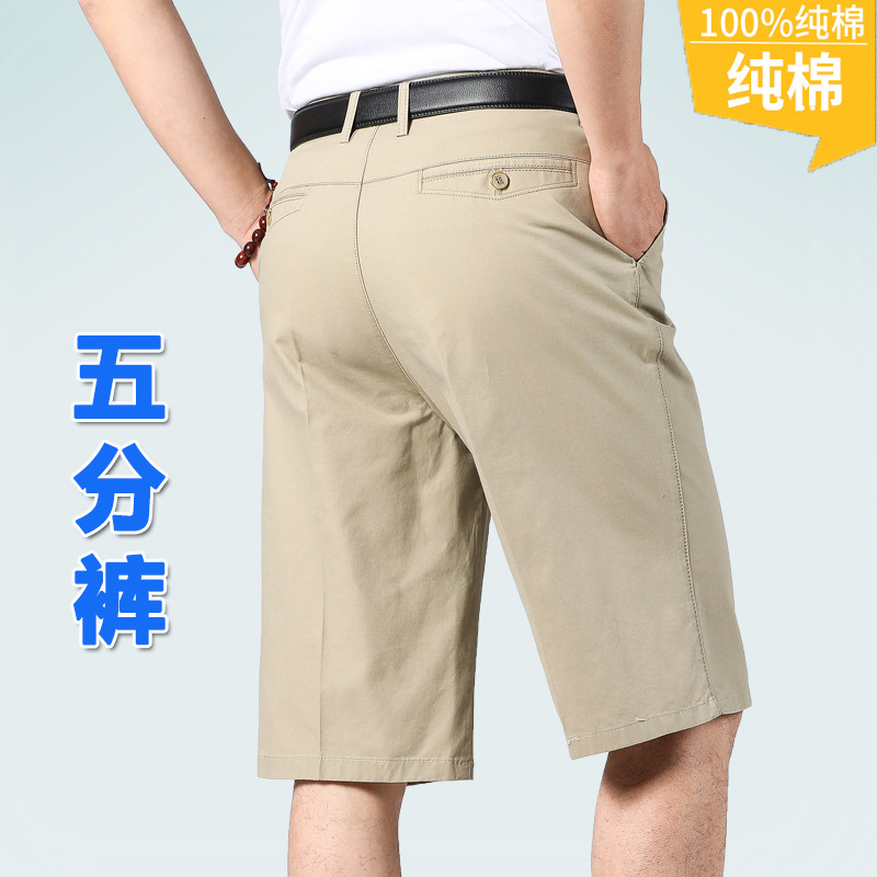 夏用薄手メンズショートパンツ、綿100%、五分丈、中高年向け、ストレート、ゆったり、お父さん向け、カジュアルパンツ、外履きメンズパンツ