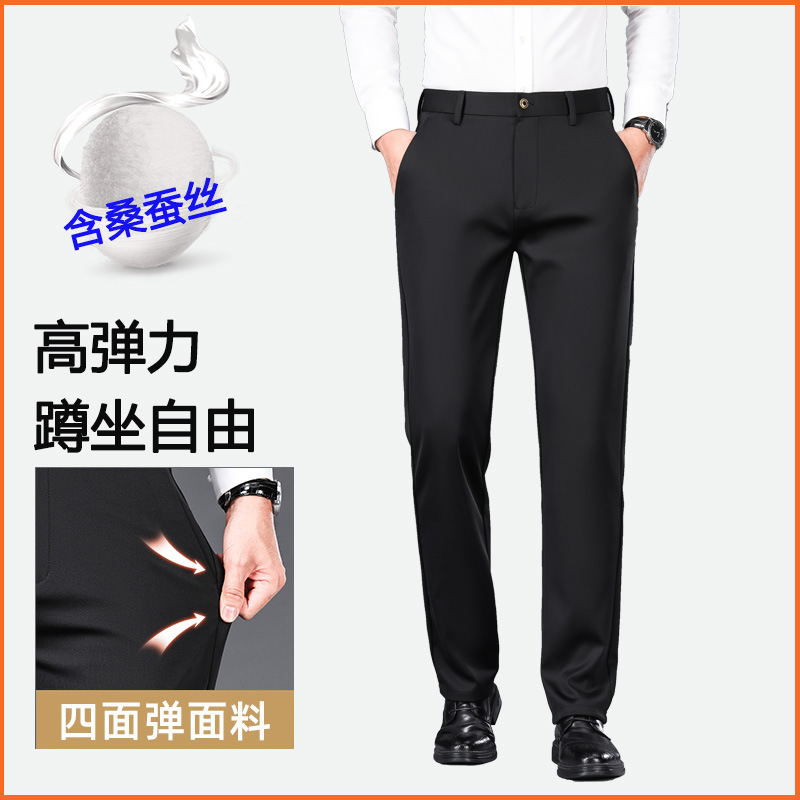 春と秋の新作厚手のマルベリーシルクカジュアルパンツメンズストレートビジネス中年ストレッチパンツ夏薄いメンズパンツ