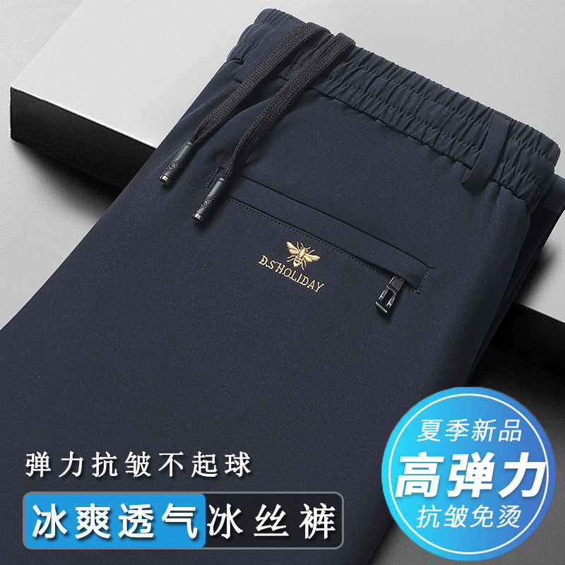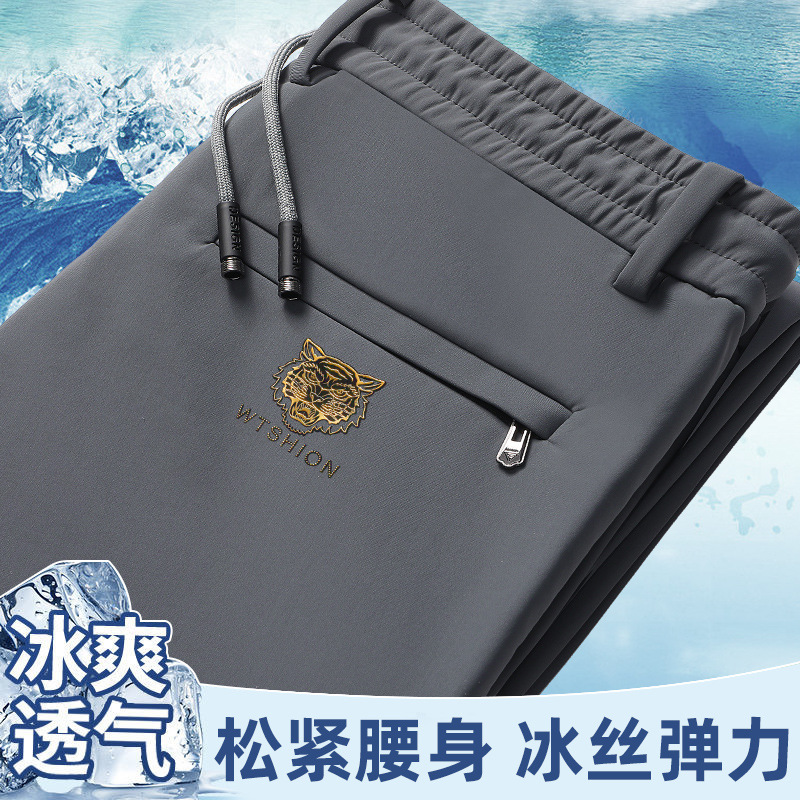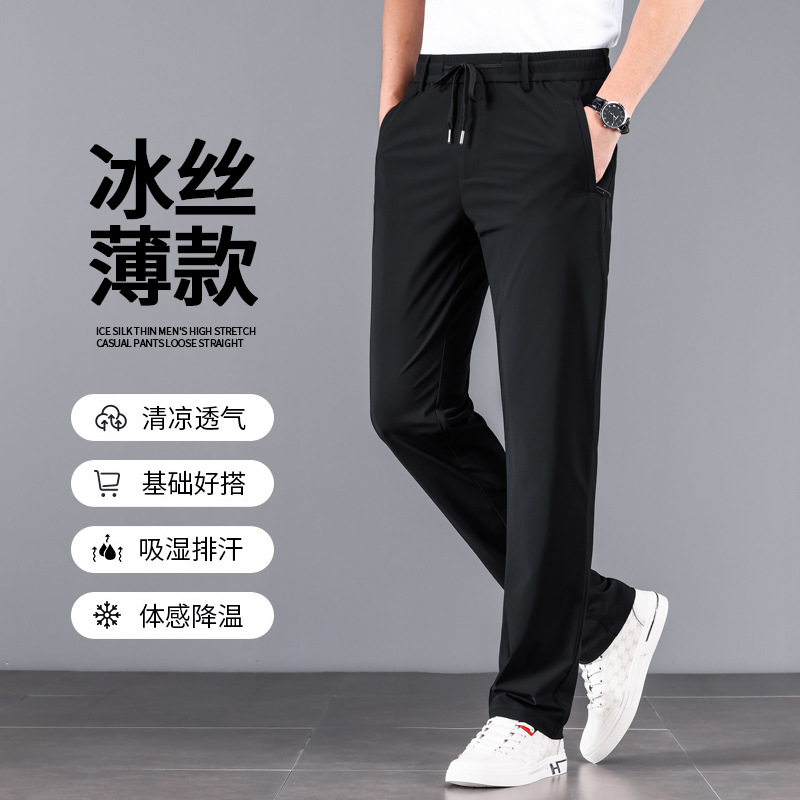 新型男性カジュアルパンツ夏の薄いエアコンズボン男性タイプの氷糸速乾弾力直筒垂順通気ズボン