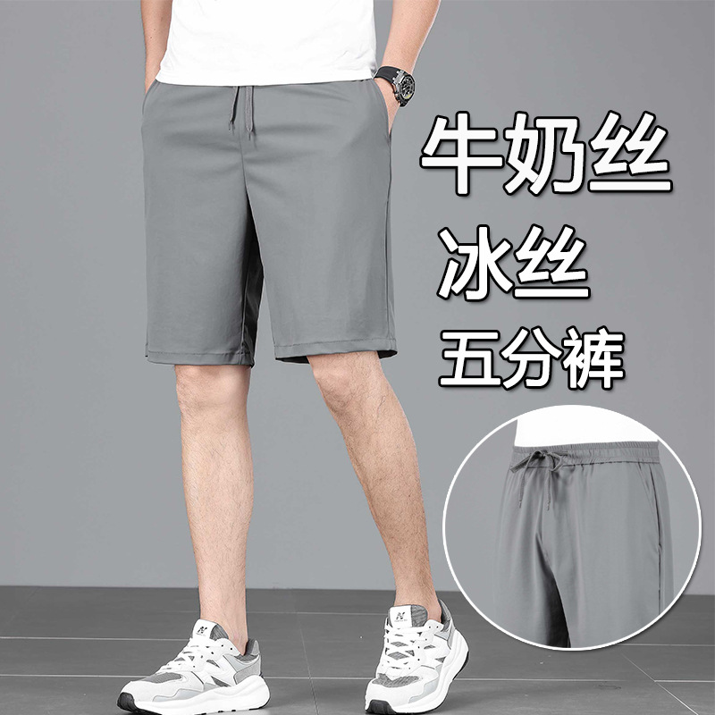 新商品の男性パンツ夏の氷糸五分ズボンのゆったりとした薄いタイプのカジュアルパンツの高弾力ビーチスポーツパンツ
