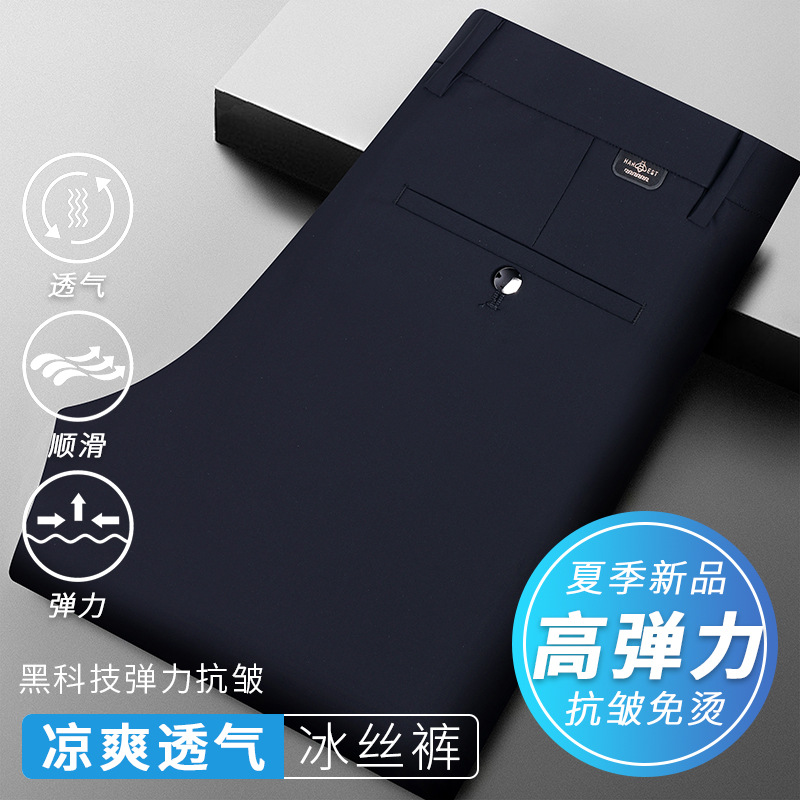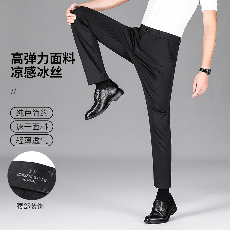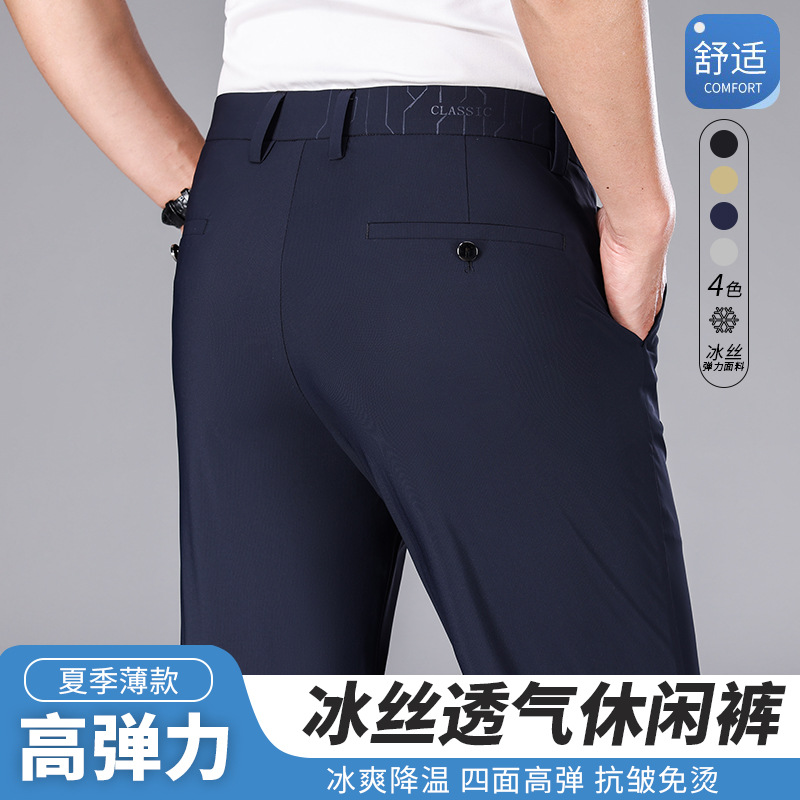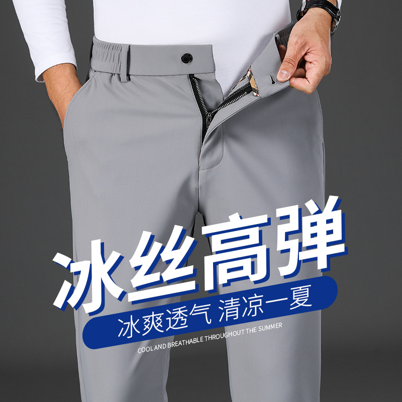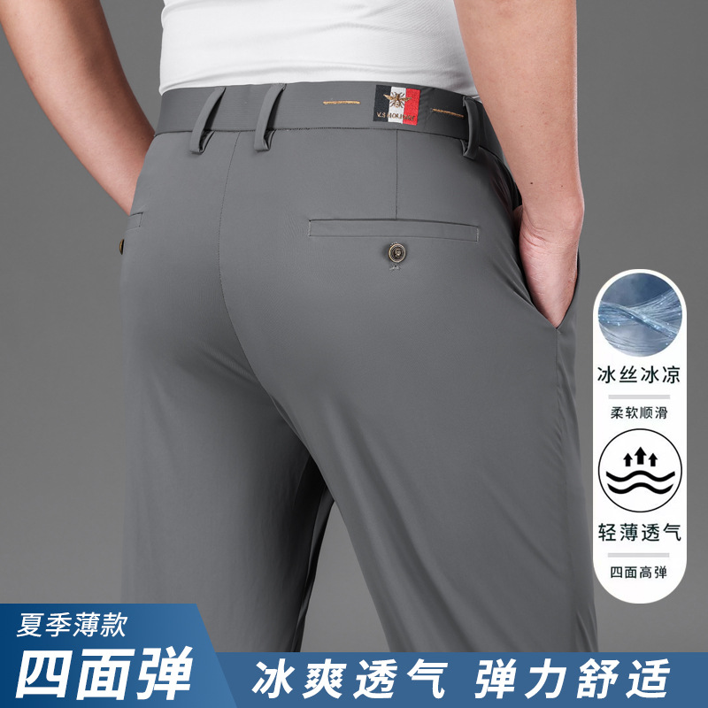 新しい夏の薄い男性カジュアルパンツ高弾力アイスストレートビジネスパンツ男の冷たい通気性の長いズボン