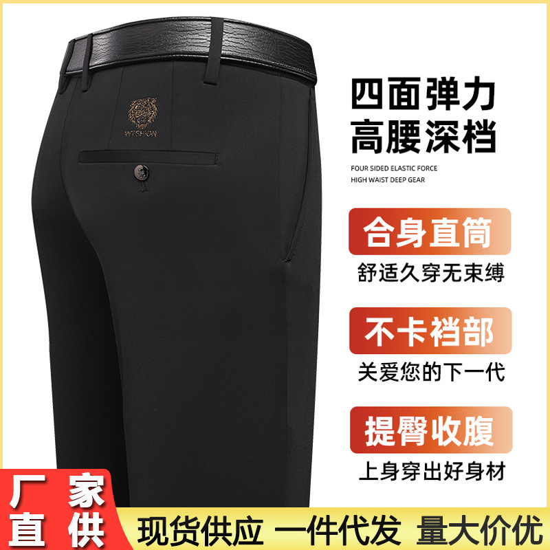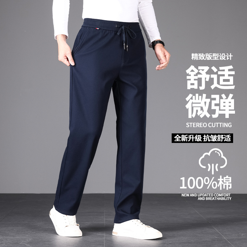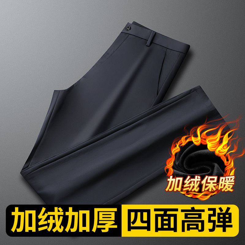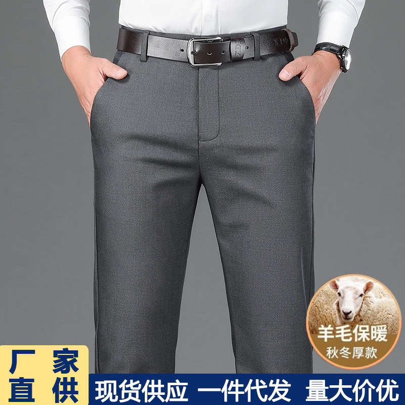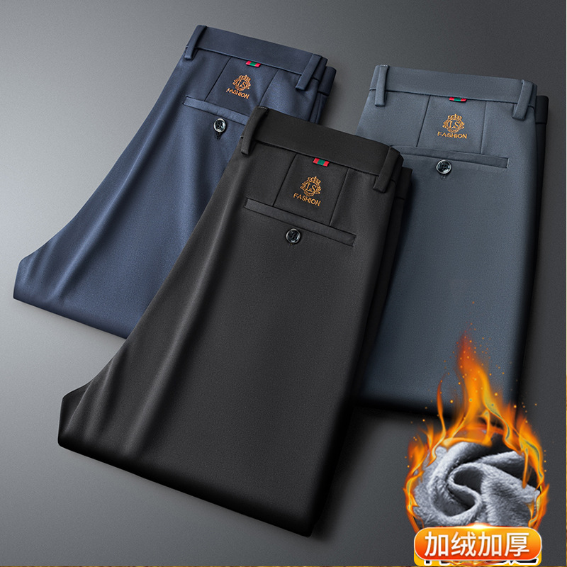 新商品メンズカジュアルパンツ秋冬厚タイプ中年ビジネスズボン男性高弾力無熱直筒長ズボン